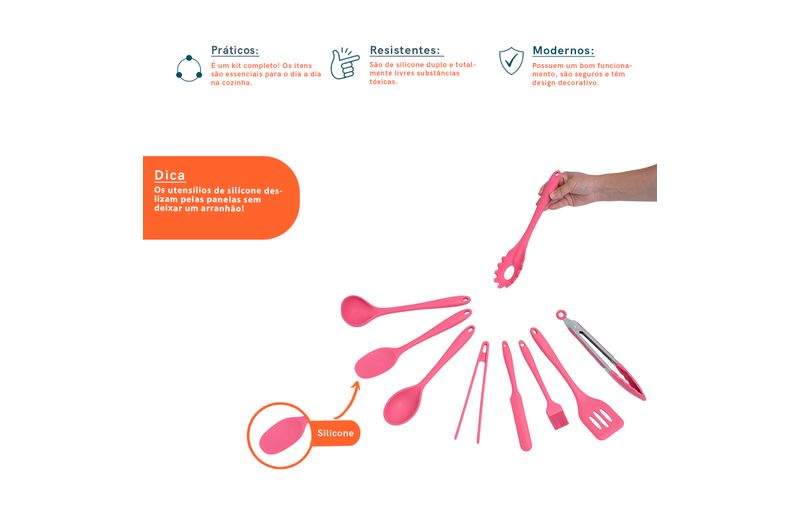 cozinha práticautensílios de siliconeKit 9 utensílios de cozinha de silicone completo multiuso - oikos