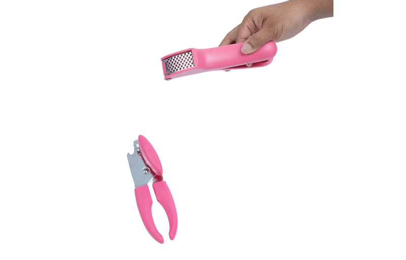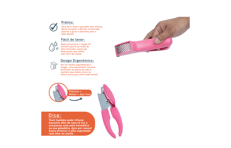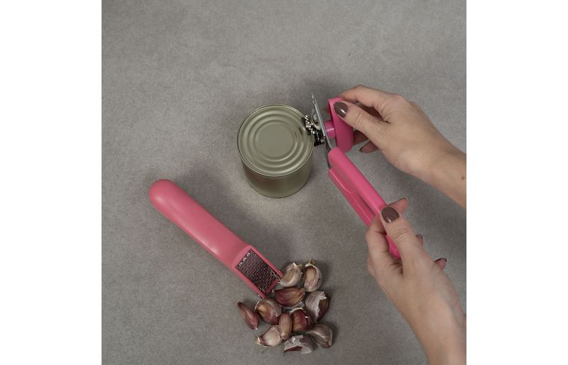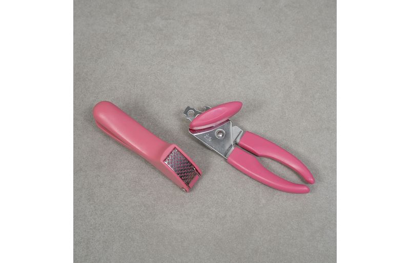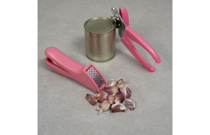 Kit abridor de latas e espremedor de alho 2 pçs rosa - oikos