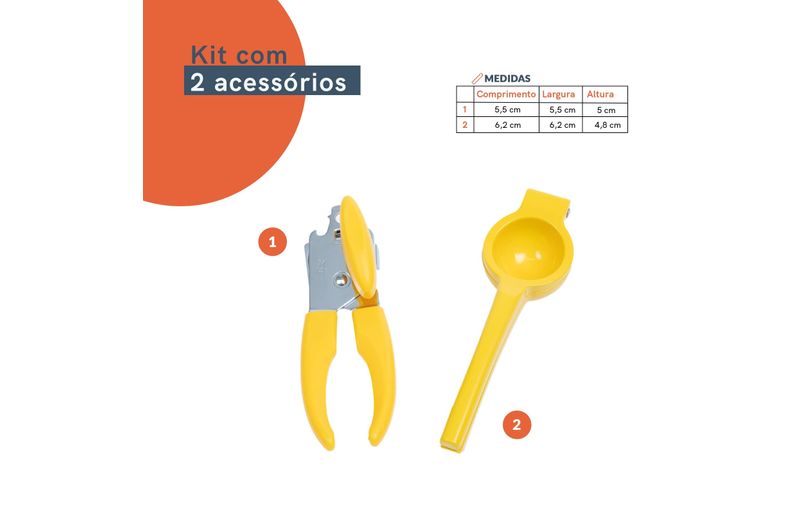 cozinha práticaacessórios de cozinhaKit abridor de latas e espremedor de limão amarelo – oikos