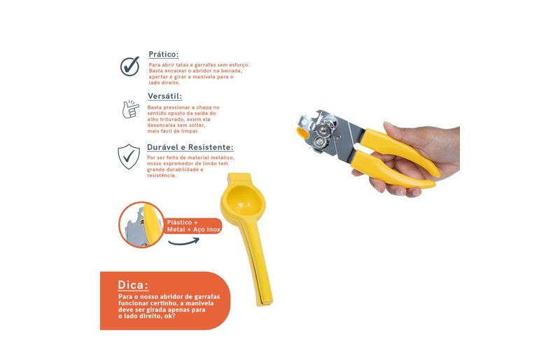 Kit abridor de latas e espremedor de limão amarelo – oikos