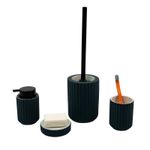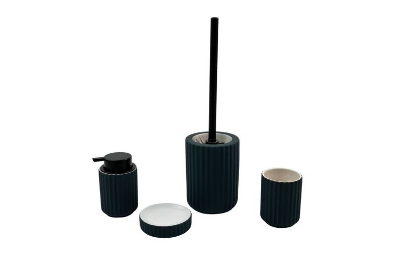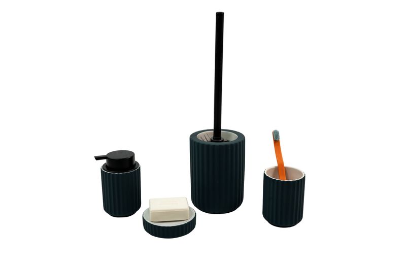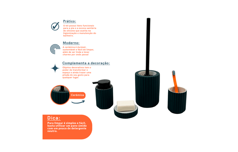 esse é o kit banheiro com porta objetos, saboneteira e escova sanitária de cerâmica canelada verde 4 pçs - oikos