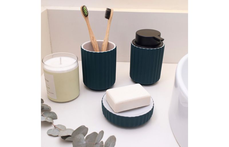 1 saboneteira de cerâmica canelada verde laguna – oikos