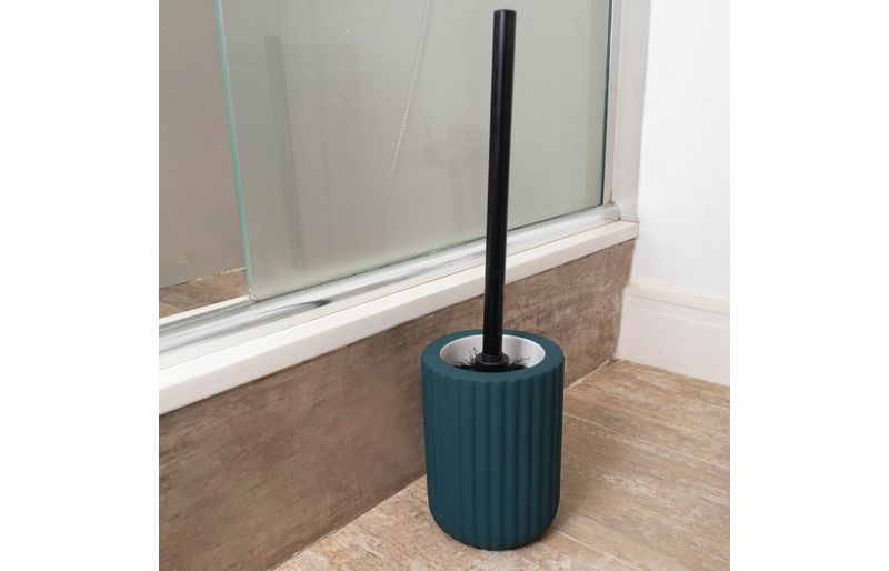 1 escova sanitária com suporte de cerâmica canelada verde laguna - oikos