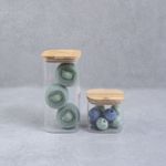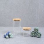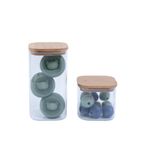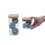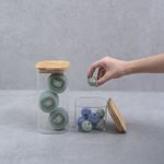 1 pote hermético de vidro flat com tampa de bambu quadrado 600ml