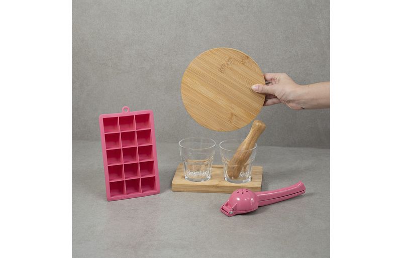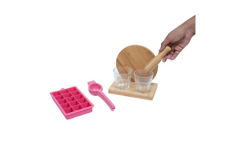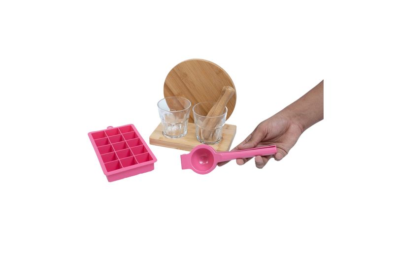 Kit caipirinha com espremedor e forma gelo 7 pç rosa – oikos