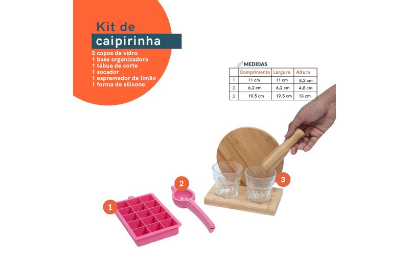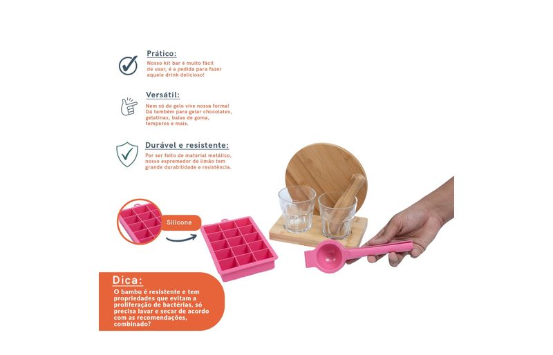 cozinha práticaorganizadores de mesaKit caipirinha com espremedor e forma gelo 7 pç rosa – oikos