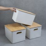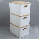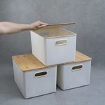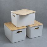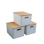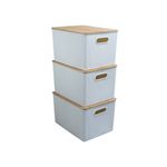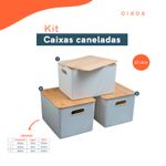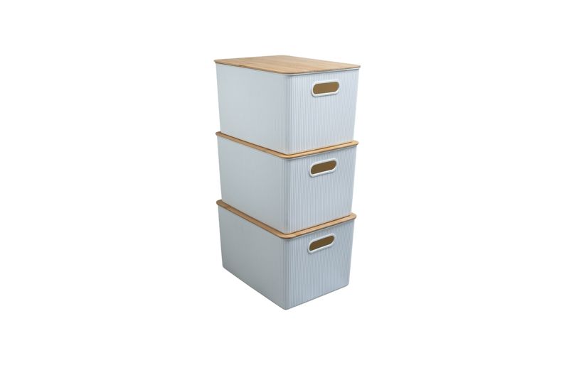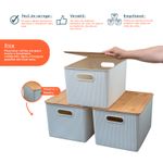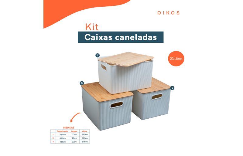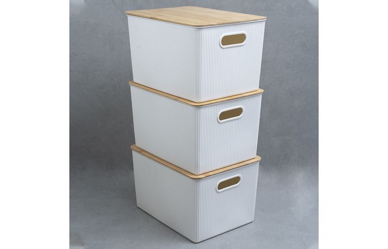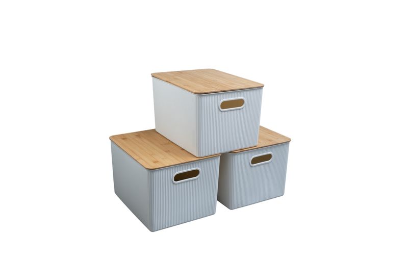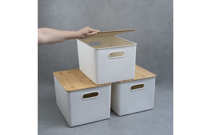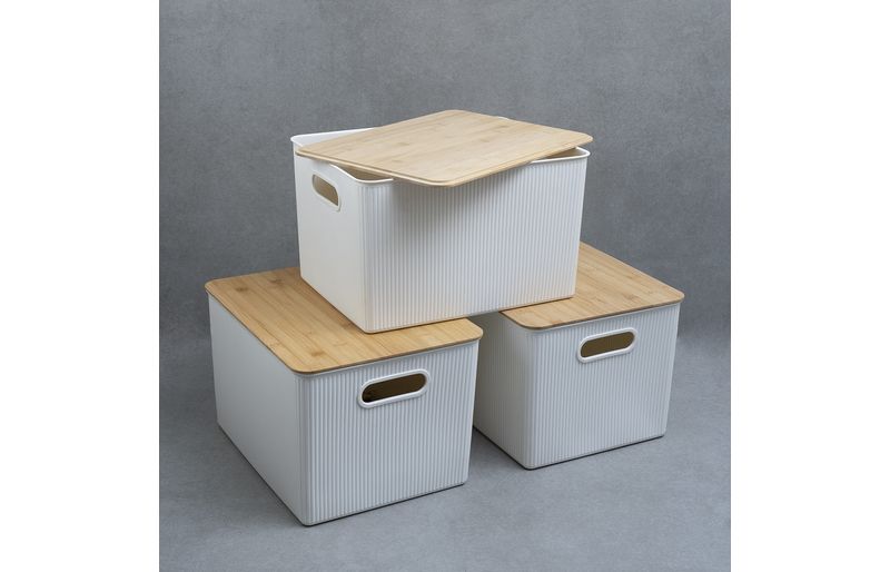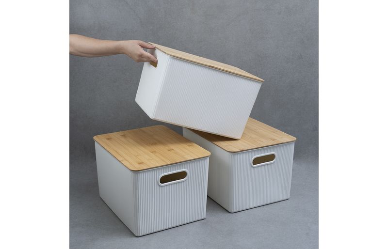 3 caixas organizadoras caneladas com tampa de bambu 23l – oikos