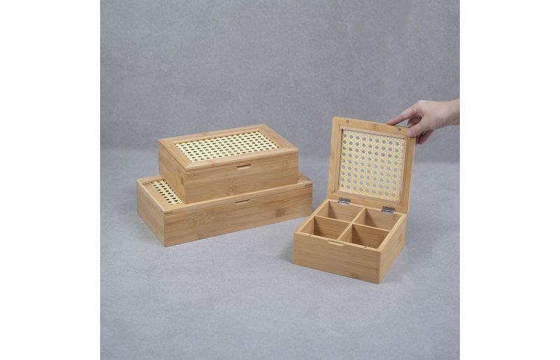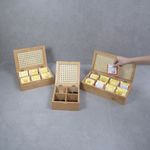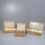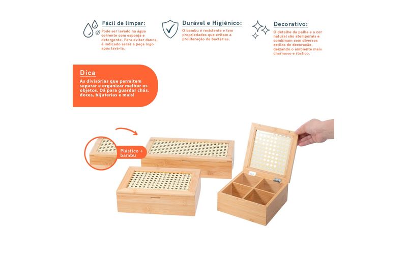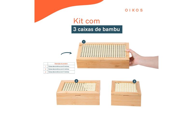 "esse é o kit chá com caixa de bambu com palhinha 4/8 nichos 3pç-oikos