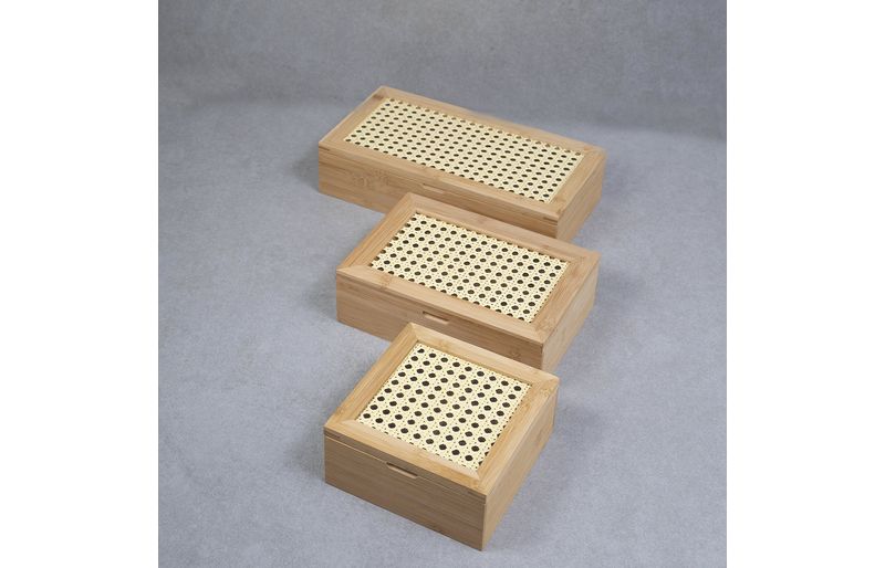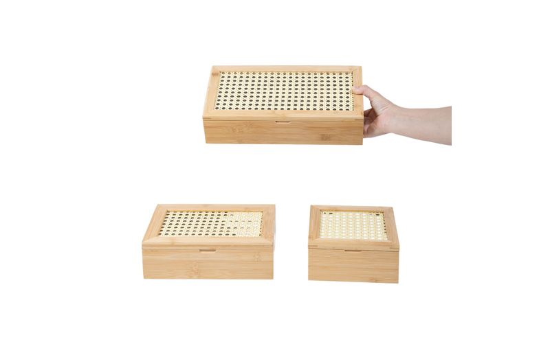 1 caixa decorativa palha indiana e bambu 4 nichos - oikos