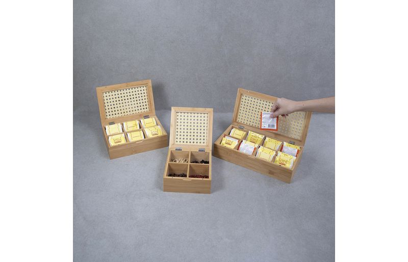 1 porta chá de bambu palhinha 6 divisórias - oikos
