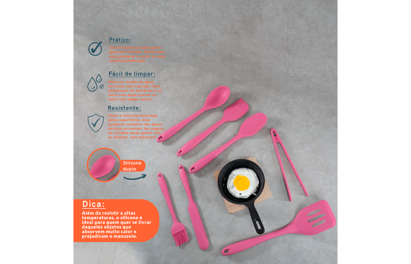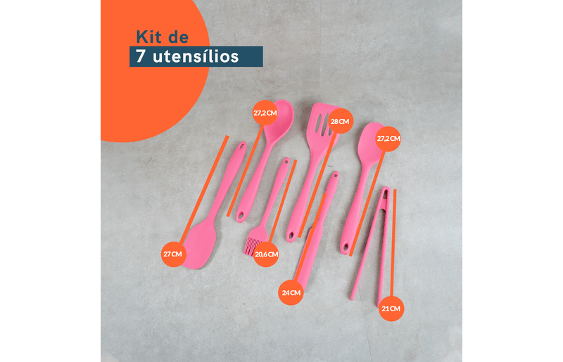 cozinha práticautensílios de siliconeKit chef variado c/ pegador de silicone 7 peças oikos