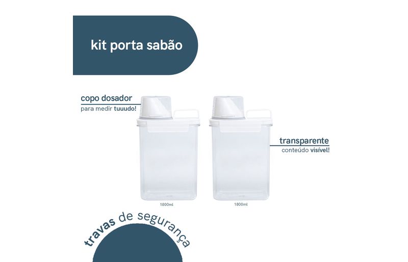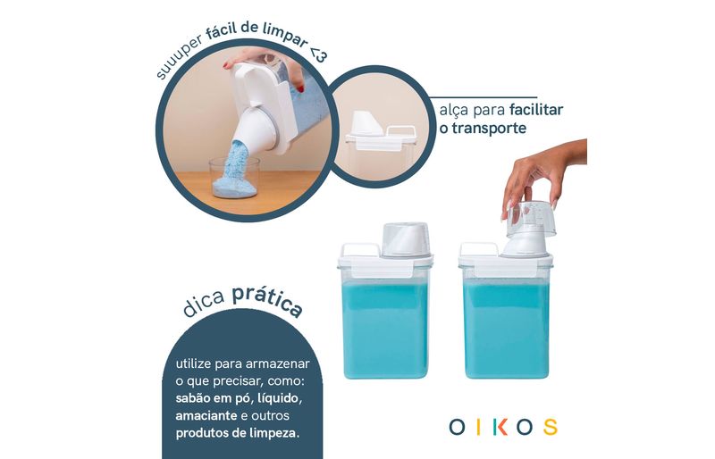 "conheça o kit com 2 porta sabão em pó 1,8l com copo dosador e travas da oikos!