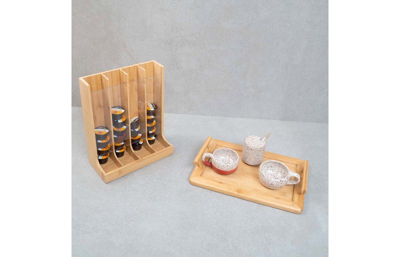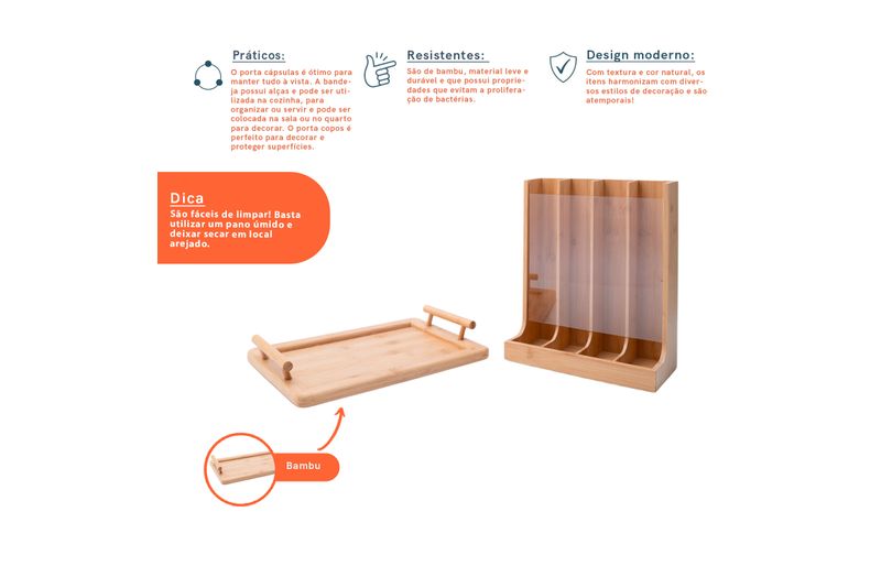 resistentes, práticos e com design moderno, são itens funcionais e decorativos. o porta capsúlas é ótimo para manter tudo sempre à vista. a bandeja possui alças e pode ser utilizada na cozinha, para organizar ou servir e pode ser colocada na sala ou no quarto para harmonizar a decoração.