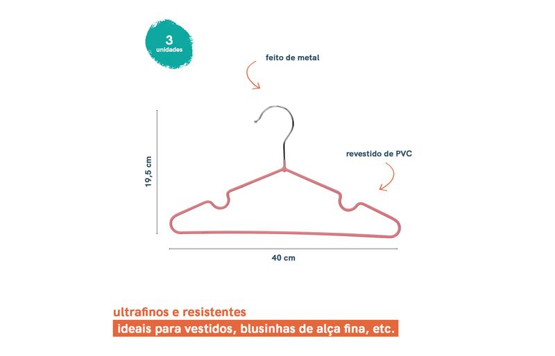 "esse é o cabide intantil da coleção mini finesse da oikos. se o problema e falta de espaço, esse cabide é a solução: ele é ultrafino, mestre em ocupar pouco espaço no armário ou arara dos pequenos. feitos de metal e revestido com pvc, sua superfície antideslizante é ótima para peças delicadas, não deixando as roupinhas leves caírem de maduras!