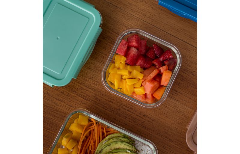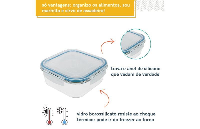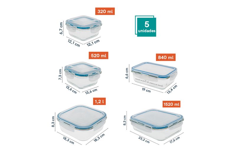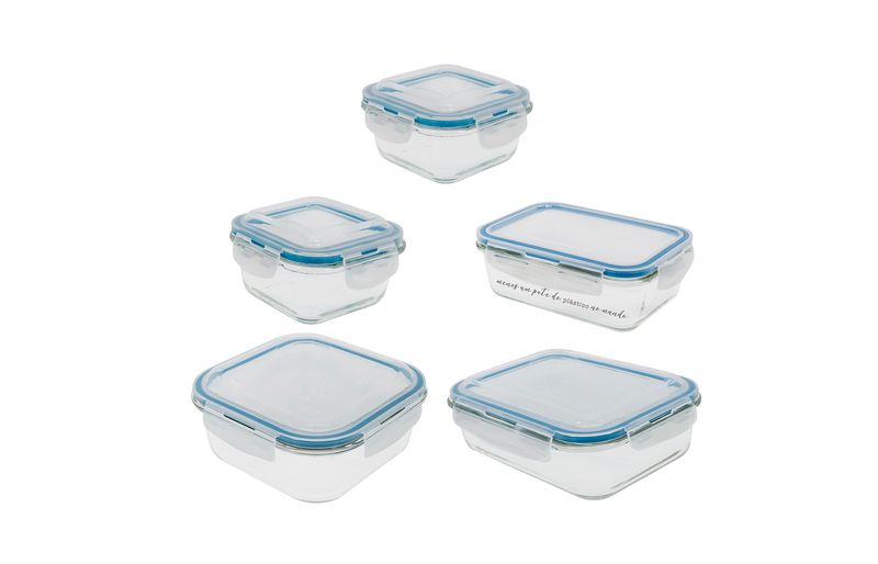 potes e mais potesmarmitasKit de 5 potes com trava quadrado com tampa transparente oikos