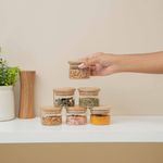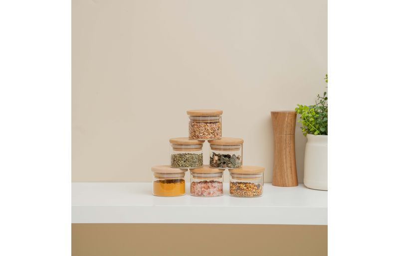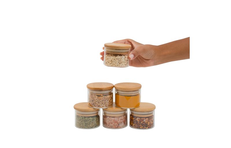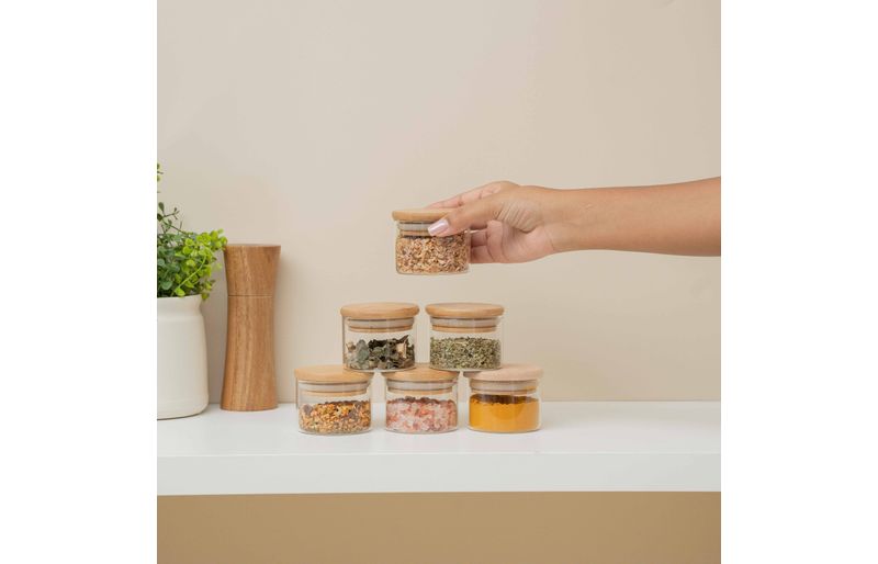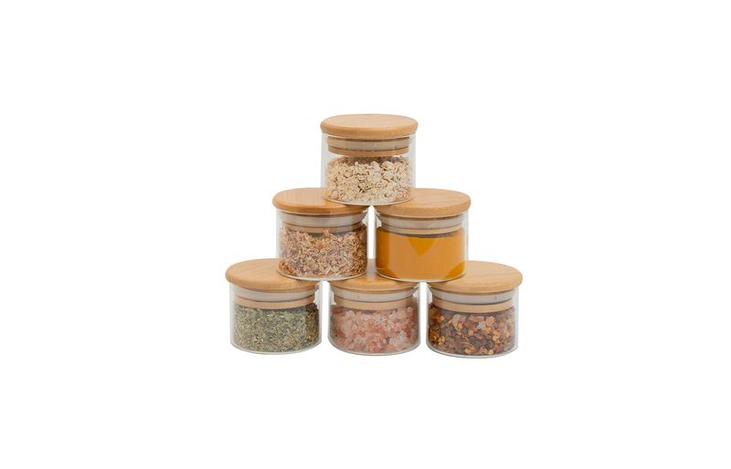 Esse é o kit de 6 potes de mantimentos de vidro borossilicato de 110ml com tampa de bambu da oikos. mestre na conservação: o anel de silicone na tampa garante uma vedação total do pote – conservando os alimentos por muito mais tempo. versátil: não é só de comida que vive esse pote: cabe algodão, pisca-pisca, pilhas, dados, acessórios de cabelo, joias, itens de escritório, flores secas, fios e o que mais você quiser guardar. acabamento especial: a tampa de bambu é selada para suportar umidade. dá para guardar alimentos mais líquidos e pode até ir na geladeira. bacana, né? tampa flat: sua tampa lisa de bambu é fácil de limpar e otimiza o seu espaço, além de ficar uma graça na cozinha ;) higiênico e durável: seu corpo de vidro borossilicato é bastante resistente, e a tampa de bambu natural evita a proliferação de bactérias. design decorativo: funcional e bonito, esse potinho transita muito bem entre os diferentes cômodos da casa, espalhando seu charme por onde quer que vá – quarto, banheiro, cozinha, sala, escritório ou lavanderia, você que manda." fácil de limpar: pode ser lavado na água corrente com esponja e detergente neutro. a tampa produto é selada para proteger contra a umidade, mesmo assim não deve ser imerso em água por muito tempo. :: quando não estiver em uso, guardar em local seco e arejado." medidas do produto: altura: 5,5cm largura: 9,5 cm comprimento: 5,5cm