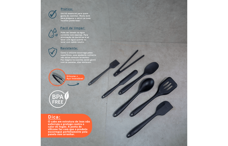 cozinha práticautensílios de siliconeKit de 7 acessórios essenciais oikos
