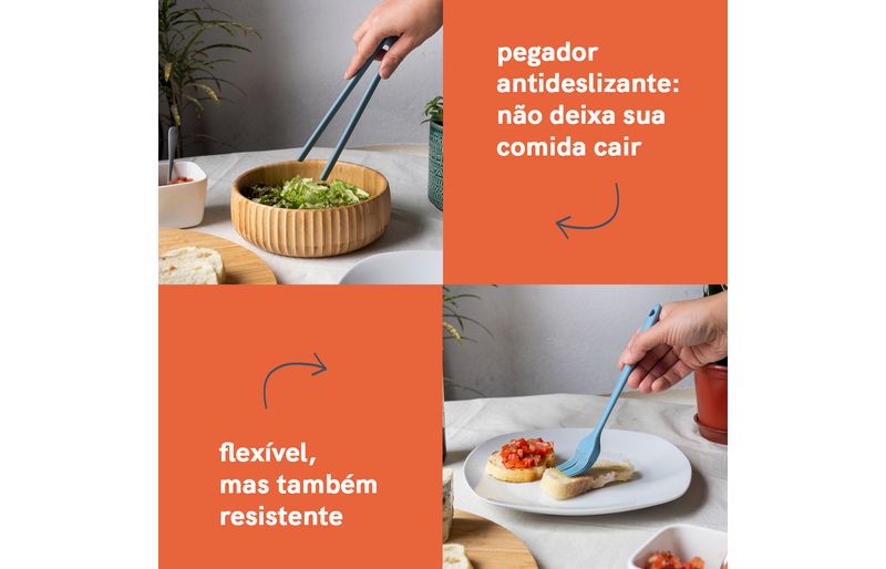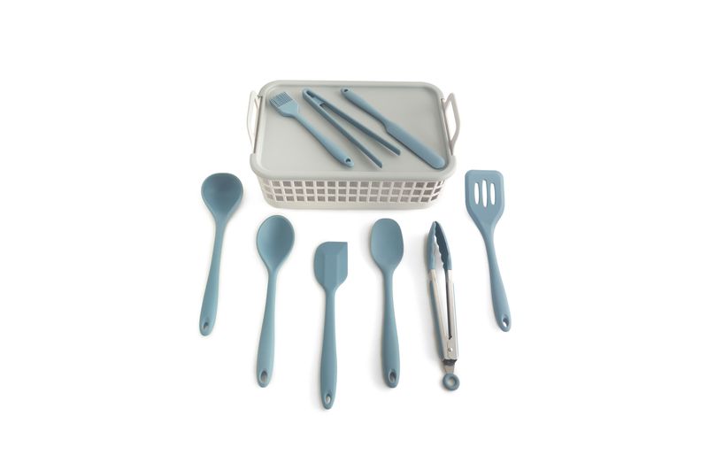 cozinha práticautensílios de siliconeKit de utensílios de cozinha c/ cesto 10 peças az - oikos