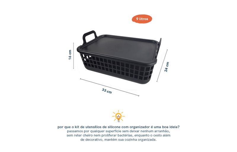 cozinha práticautensílios de siliconeKit de utensílios de cozinha c/ cesto 10 peças pr - oikos