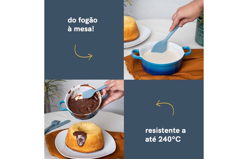atire a primeira pedra quem nunca arranhou uma panela! por isso gostamos muito de utensílios de silicone para o preparo de alimentos, ele escorrega pela panela toda sem deixar nenhum arranhão! e você ainda pode bater a haste para tirar o excesso que ficou, sem amassar a beirada dela. o silicone também facilita e muito a limpeza, já que sua superfície lisa não retém cheiro, não prolifera bactérias e ainda não conduz o calor provocado pela chama do fogão. a linha de utensílios da oikos te ajuda nas mais diversas aventuras culinárias sem te dar o bolo.