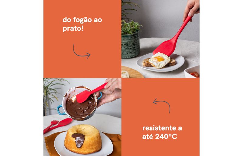 atire a primeira pedra quem nunca arranhou uma panela! por isso gostamos muito de utensílios de silicone para o preparo de alimentos, ele escorrega pela panela toda sem deixar nenhum arranhão! e você ainda pode bater a haste para tirar o excesso que ficou, sem amassar a beirada dela. o silicone também facilita e muito a limpeza, já que sua superfície lisa não retém cheiro, não prolifera bactérias e ainda não conduz o calor provocado pela chama do fogão. a linha de utensílios da oikos te ajuda nas mais diversas aventuras culinárias sem te dar o bolo.