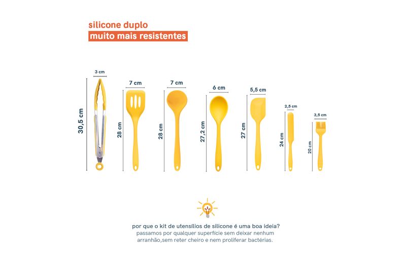 cozinha práticautensílios de siliconeKit de utensílios de silicone com 7 peças amarelo - oikos