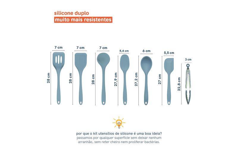 Kit de utensílios de silicone com 7 peças azul - oikos