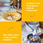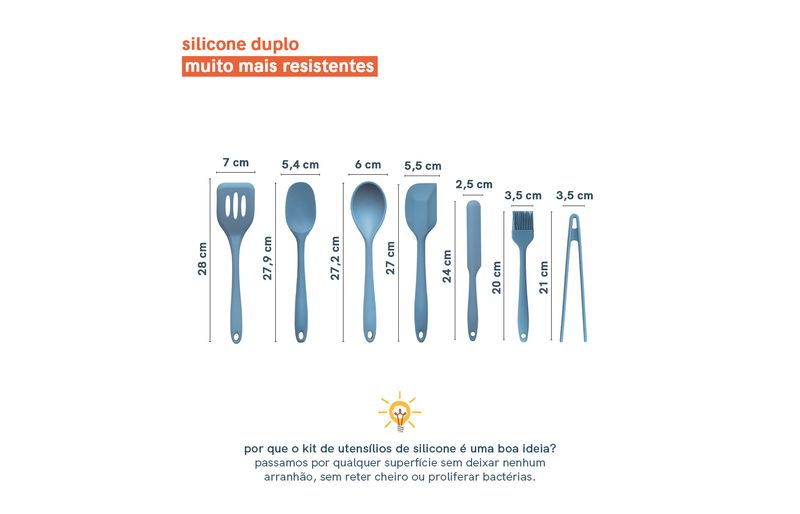 atire a primeira pedra quem nunca arranhou uma panela! por isso gostamos muito de utensílios de silicone para o preparo de alimentos, ele escorrega pela panela toda sem deixar nenhum arranhão! e você ainda pode bater a haste para tirar o excesso que ficou, sem amassar a beirada dela. o silicone também facilita e muito a limpeza, já que sua superfície lisa não retém cheiro, não prolifera bactérias e ainda não conduz o calor provocado pela chama do fogão. a linha de utensílios da oikos te ajuda nas mais diversas aventuras culinárias sem te dar o bolo.