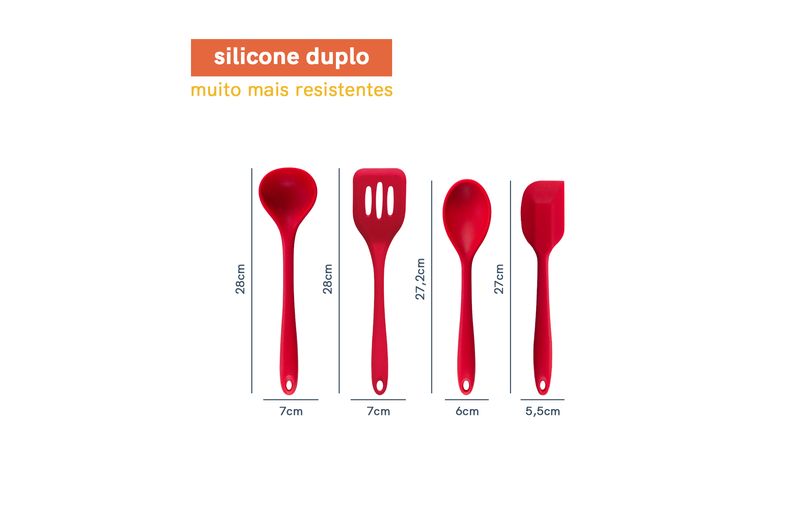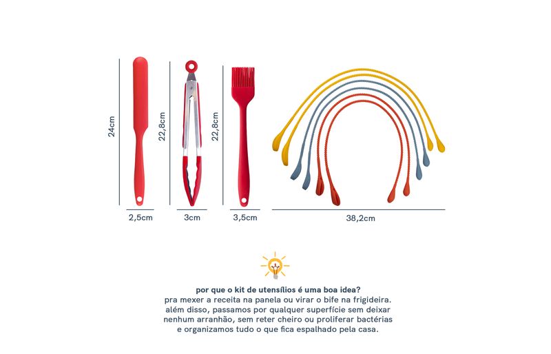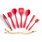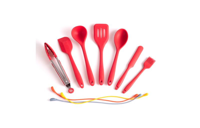 Esse é o kit de utensílios de silicone com 8 peças amarrador vermelho da oikos.