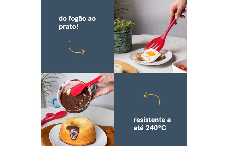atire a primeira pedra quem nunca arranhou uma panela! por isso gostamos muito de utensílios de silicone para o preparo de alimentos, ele escorrega pela panela toda sem deixar nenhum arranhão! e você ainda pode bater a haste para tirar o excesso que ficou, sem amassar a beirada dela. o silicone também facilita e muito a limpeza, já que sua superfície lisa não retém cheiro, não prolifera bactérias e ainda não conduz o calor provocado pela chama do fogão. a linha de utensílios da oikos te ajuda nas mais diversas aventuras culinárias sem te dar o bolo.