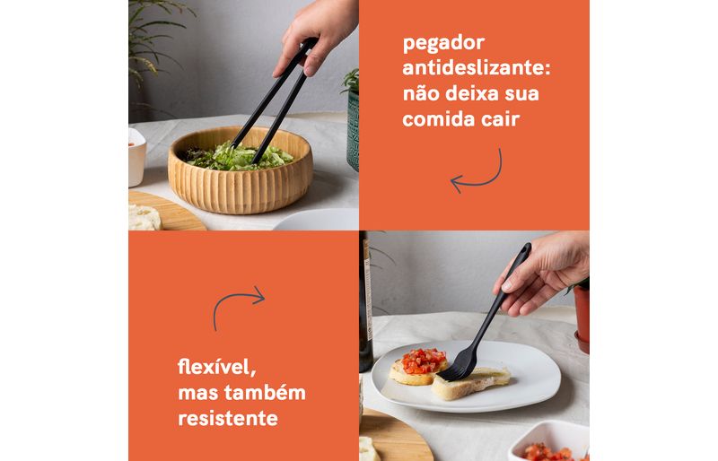 Kit de utensílios de silicone com 8 peças preto - oikos