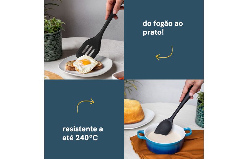 cozinha práticautensílios de siliconeKit de utensílios de silicone com 8 peças preto - oikos
