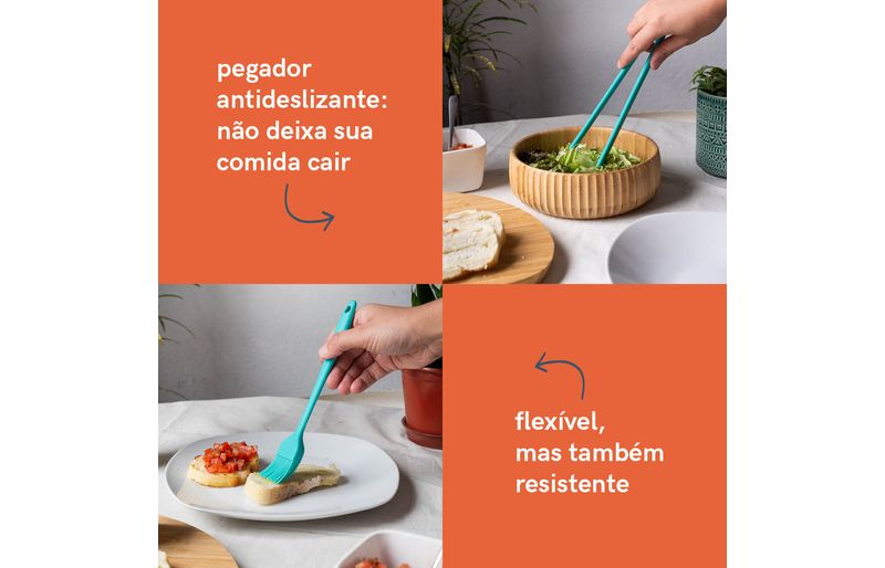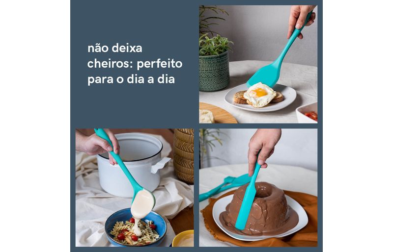 atire a primeira pedra quem nunca arranhou uma panela! por isso gostamos muito de utensílios de silicone para o preparo de alimentos, ele escorrega pela panela toda sem deixar nenhum arranhão! e você ainda pode bater a haste para tirar o excesso que ficou, sem amassar a beirada dela. o silicone também facilita e muito a limpeza, já que sua superfície lisa não retém cheiro, não prolifera bactérias e ainda não conduz o calor provocado pela chama do fogão. a linha de utensílios da oikos te ajuda nas mais diversas aventuras culinárias sem te dar o bolo.