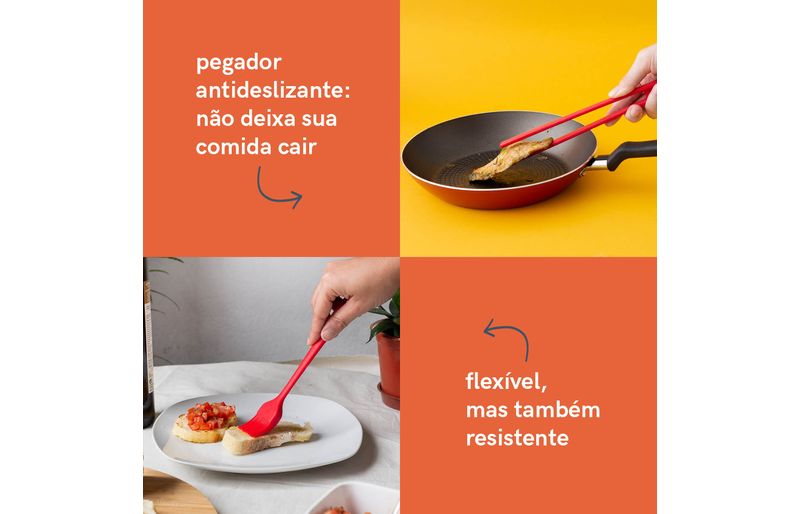atire a primeira pedra quem nunca arranhou uma panela! por isso gostamos muito de utensílios de silicone para o preparo de alimentos, ele escorrega pela panela toda sem deixar nenhum arranhão! e você ainda pode bater a haste para tirar o excesso que ficou, sem amassar a beirada dela. o silicone também facilita e muito a limpeza, já que sua superfície lisa não retém cheiro, não prolifera bactérias e ainda não conduz o calor provocado pela chama do fogão. a linha de utensílios da oikos te ajuda nas mais diversas aventuras culinárias sem te dar o bolo.