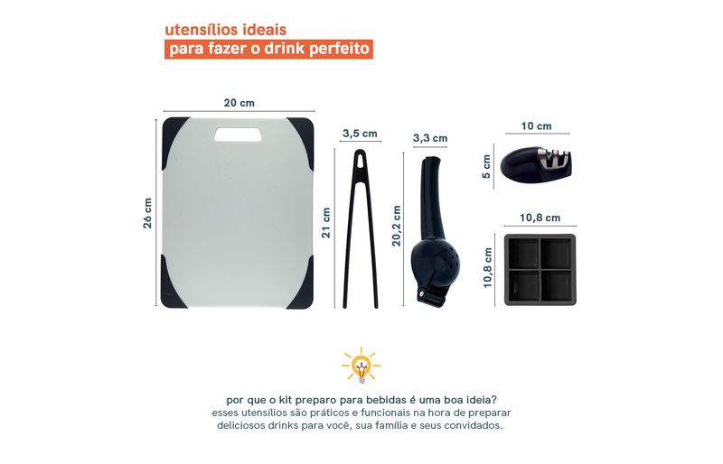 cozinha práticautensílios de siliconeKit de utensílios p/ preparo de bebidas 5 peças - oikos