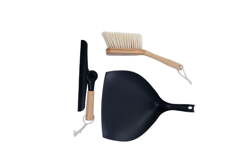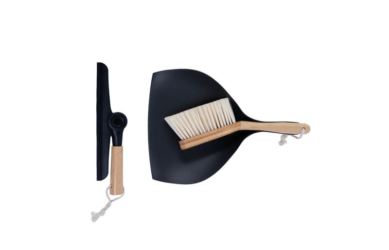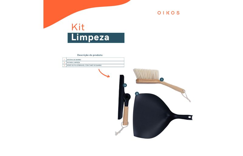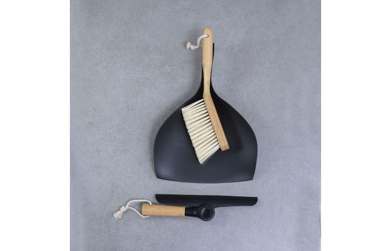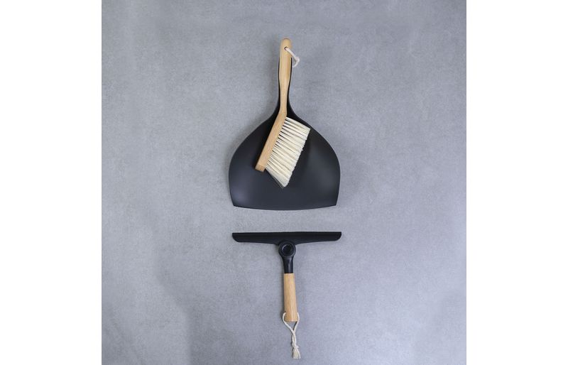 Kit escova de bambu e rodo de pia preto - oikos
