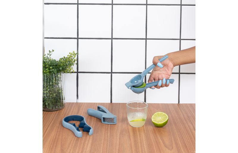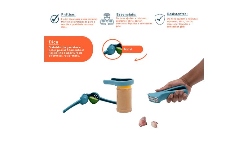 cozinha práticaacessórios de cozinhaKit espremedor de alho, espremedor de limão e abridor de garrafas e potes - oikos