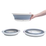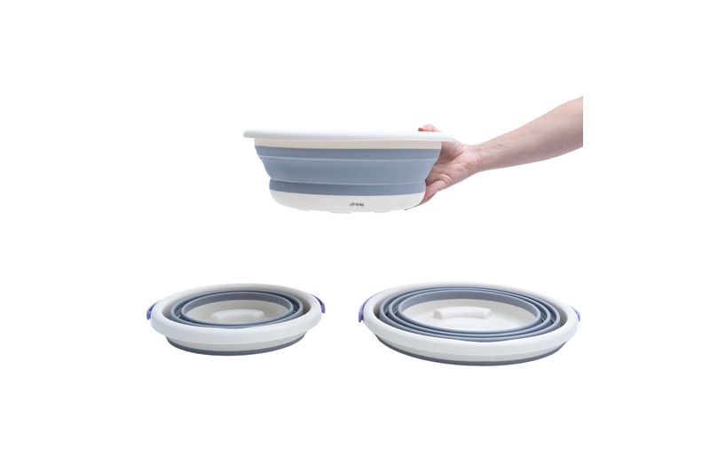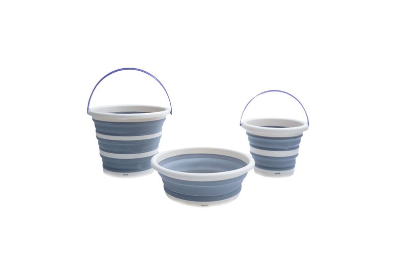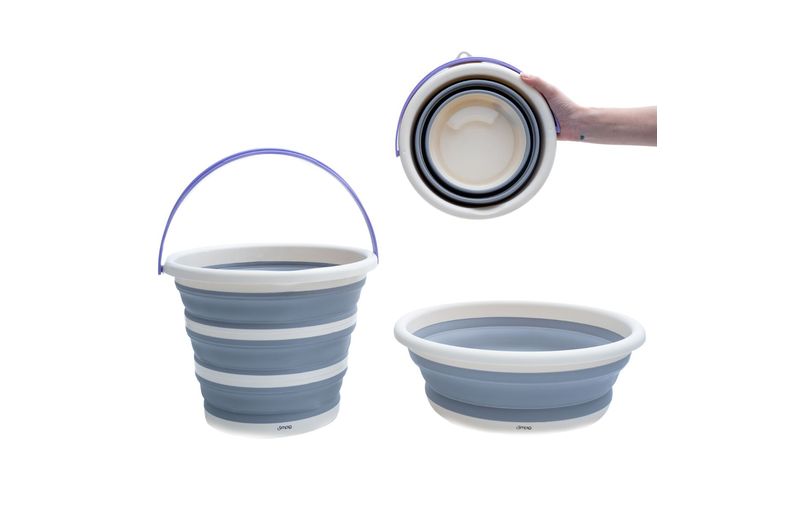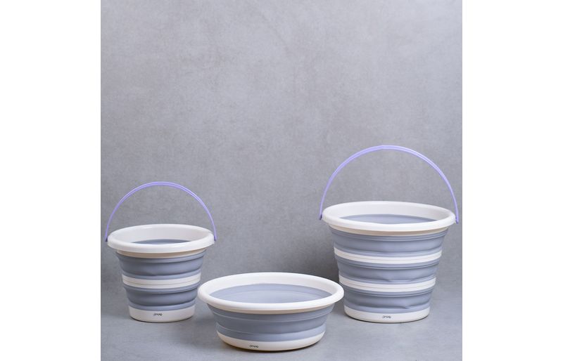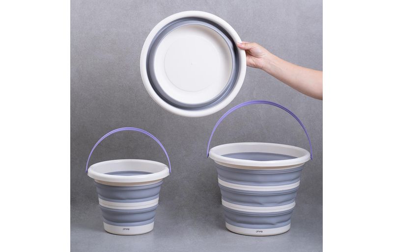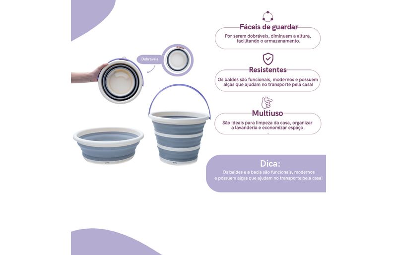 multiuso, resistentes e fáceis de guardar, são itens ideais para organizar a lavanderia e economizar espaço! os baldes possuem alça para facilitar o transporte, são retráteis com aros estruturados e diminuem a altura em até 5 vezes. a bacia é dobravél e é possível diminuir a altura em até 3 vezes.