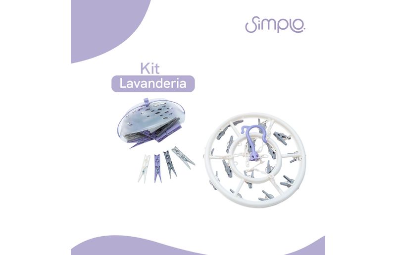 "conheça o kit lavanderia com cesto de prendedores de plástico e mini varal de plástico da simplo.