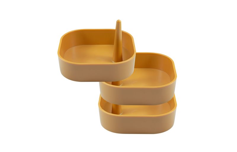 03 unidades do mini organizador empilhável de plástico na cor mostarda