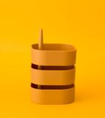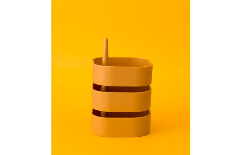 Esse é o mini organizador de plástico da oikos na cor mostarda.