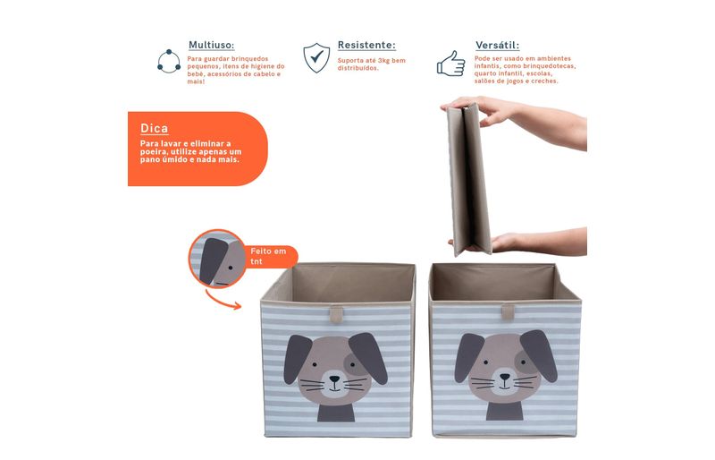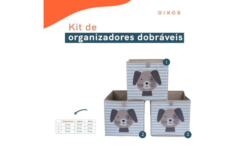 Kit organizador dobrável infantil tnt cachorrinho c/3 - oikos