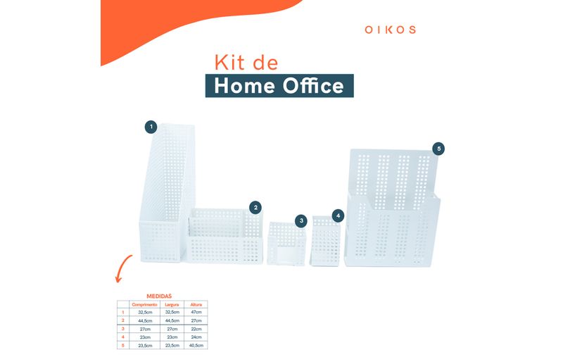 Kit porta caneta e porta objetos 5 pçs branco - oikos