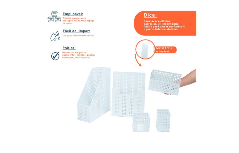 casa organizadaporta joias e porta objetosKit porta caneta e porta objetos 5 pçs branco - oikos