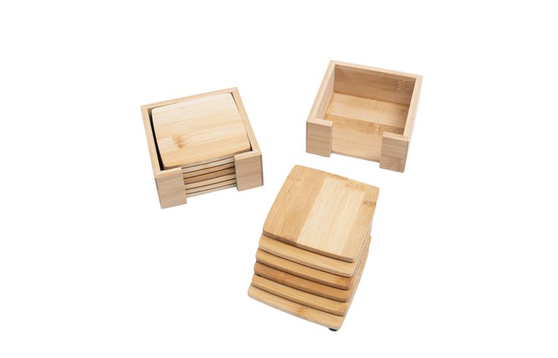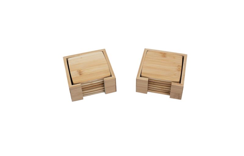 2 jogos de porta copos quadrados de bambu 6pcs – oikos