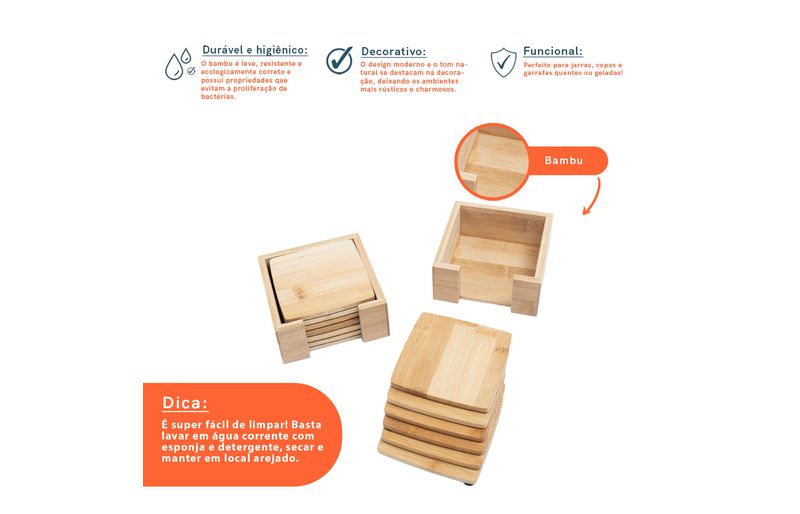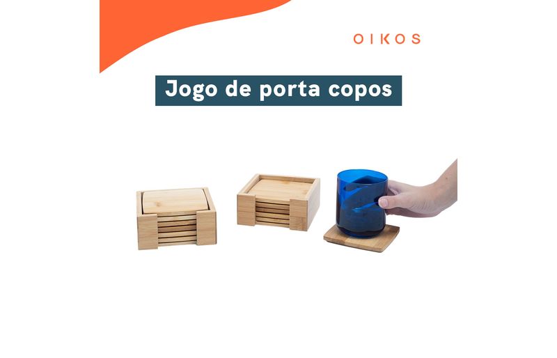 esse é o jogo de porta copos quadrado de bambu da oikos.