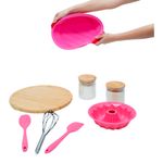 Kit pote hermético tampa de bambu utilidades silicone oikos