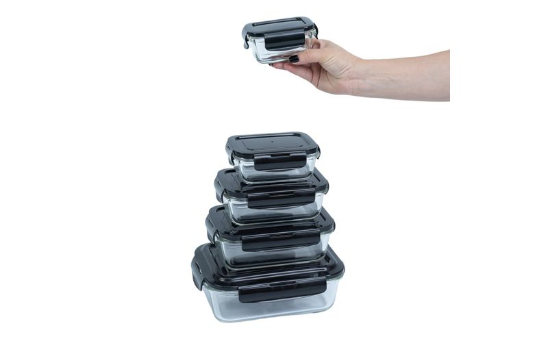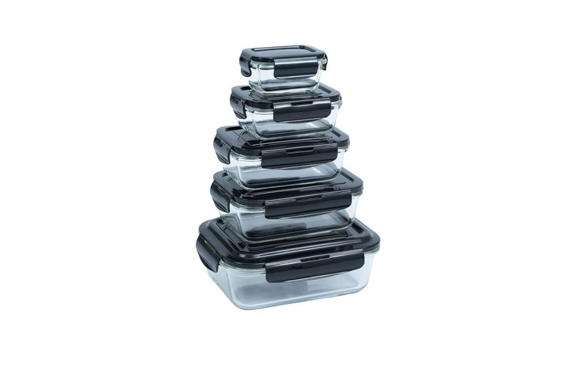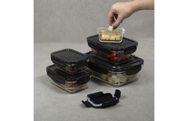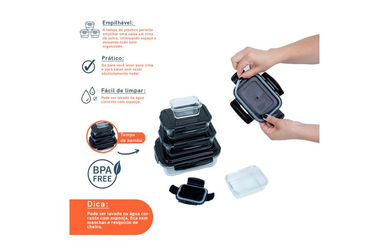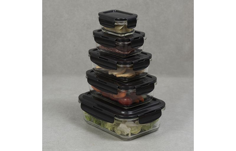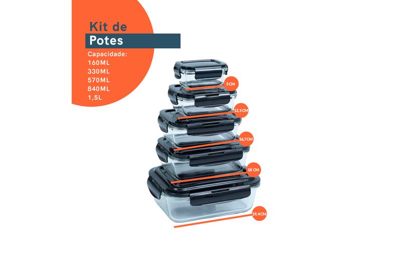 Kit potes de vidro com tampa colorida 5 pçs - oikos