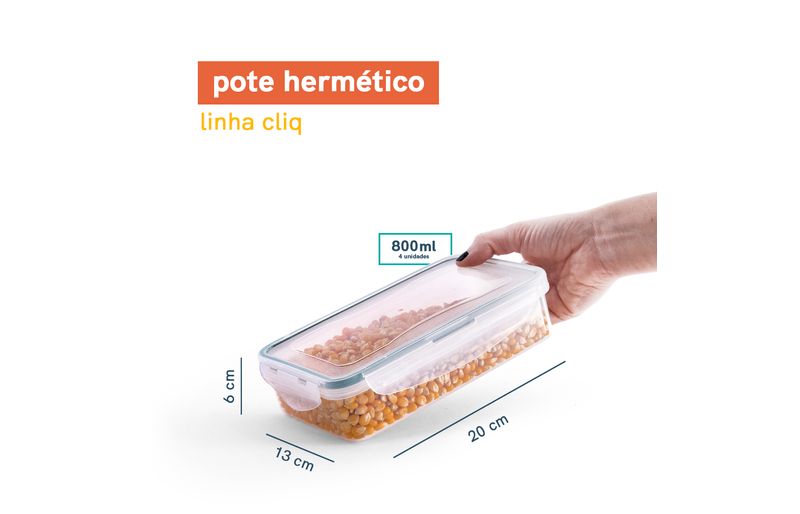 Kit potes herméticos de plástico 800ml 4pçs oikos