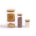 "esse é o conjunto de potes de mantimentos quadrado flat com tampa de bambu da oikos. seu formato quadrado ajuda a aproveitar melhor o espaço - ele encaixa direitinho no canto do armário. tampa flat: uma tampa de bambu retinha, fácil de limpar e que fica uma graça na cozinha ;).